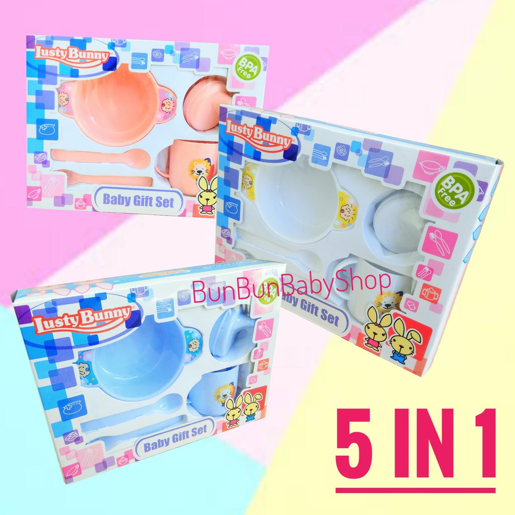 LUSTY BUNNY 5 in 1 Feeding Set Peralatan Makan Bayi Baby Gift Set Murah Lucu Kado Kelahiran